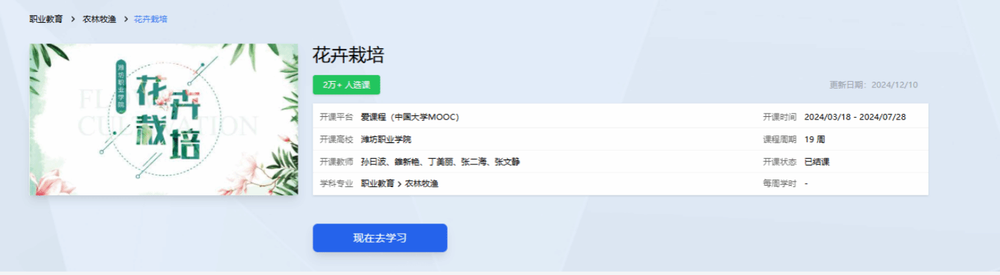 12月9日,教育部网站公布了2023年职业教育国家在线精品课程名单,我院孙曰波教授主持的《花卉栽培》课程和王锐教授主持的《汽车底盘机械系统构造与维修》课程成功入选,是学院关键办学能力提升的最新标志性成果。职业教育国家在线精品课程是教育部为推动职业教育优质数字资源开发与开放共享,提升职业院校关键办学能力的重要项目,旨在发挥职业教育数字化转型升级、促进优质教育资源均衡、深化教学改革等方面的重要作用,代表着我国职业教育课程建设的最高水平。...更多 -