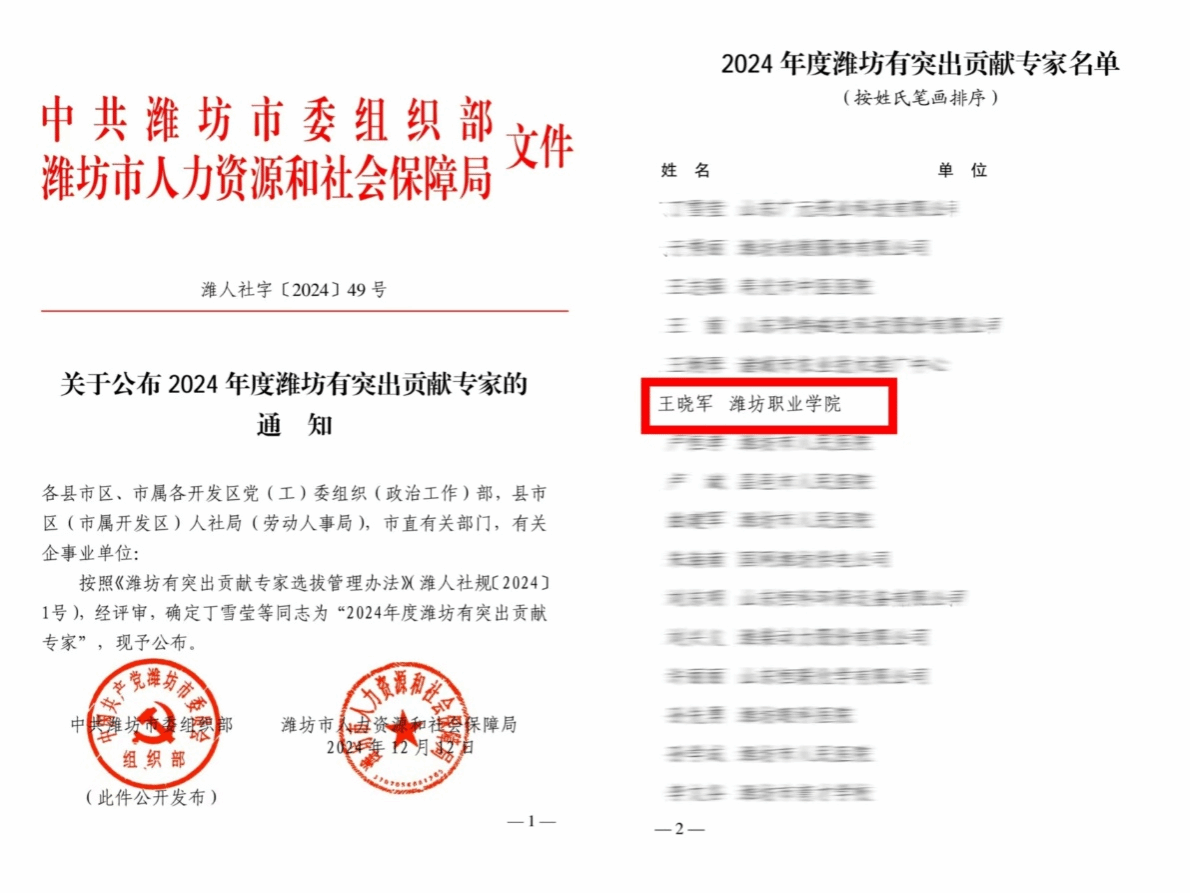 近日,中共潍坊市委组织部、潍坊市人力资源和社会保障局正式公布了“2024年度潍坊有突出贡献专家”评选结果,我院王晓军老师获此殊荣。王晓军,中共党员,博士研究生在读,开云体育APP下载网址机电工程学院综合办公室主任,潍坊市重点实验室负责人,主要从事电气自动化技术专业教学科研,以及职业教育研究工作。参与国家社会科学基金项目、山东省社会科学规划研究项目、山东省人文社会科学课题、山东省教育科学规划等项目研究工作,取得了丰硕的成果。...更多 -