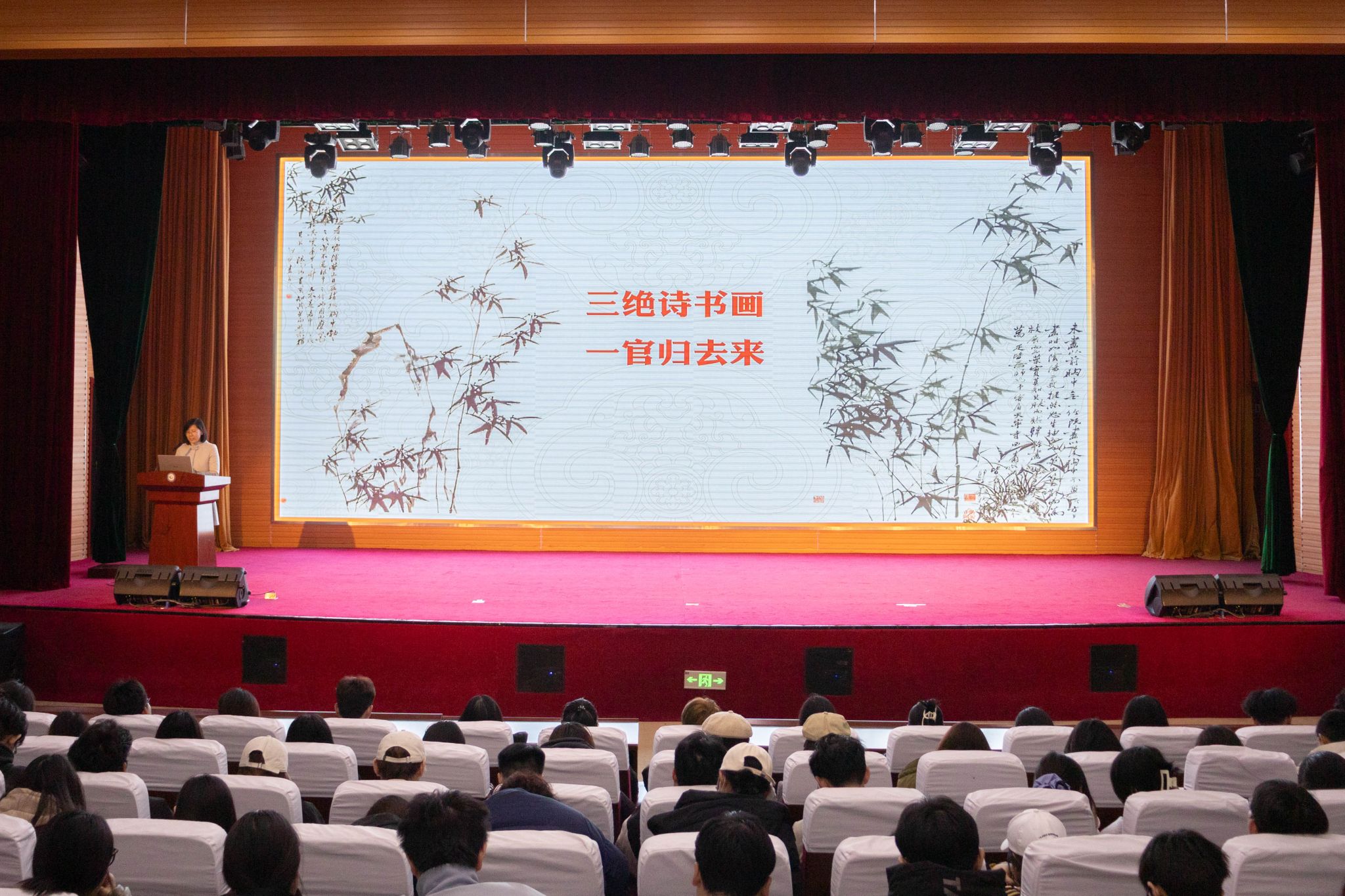3月27日下午,学院第124场人文与思政讲座在滨海校区图书馆报告厅举行。马克思主义学院马臻臻老师作了题为“穿越墨香,邂逅板桥——探索郑板桥的人文世界”讲座。2024级400余名学生参加讲座。马臻臻老师是山东高校首批思政课教学名师工作室成员,曾获第二届全省学校思想政治理论课教学比赛一等奖。马老师通过“板桥知识知多少”的问卷测试,激发同学们的好奇心。随后,马老师通过“三绝诗书画,一官归去来”概括了“板桥之名人尽皆知的奥秘”...更多 -