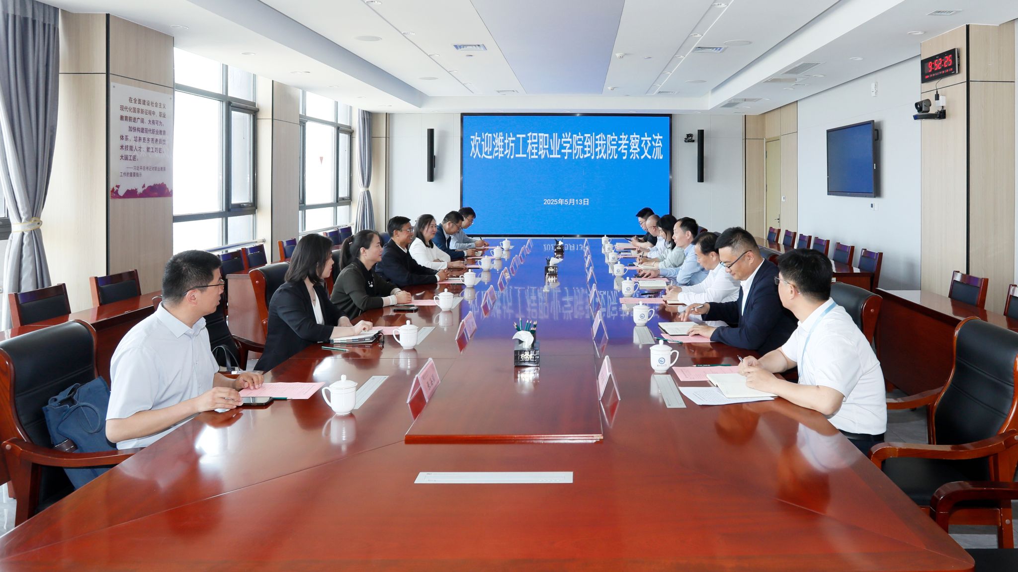 5 月 13 日上午,潍坊工程职业学院党委书记吕尧良一行 7 人到我院考察交流。学院党委书记王浩、党委副书记贺志强接待客人。办公室、组织人事处、教务处、科技处、财务处主要负责同志参加座谈。座谈会上,王浩对吕尧良一行表示欢迎,并一同观看了学院宣传片。贺志强介绍了学院发展历程、办学特色以及学院在“双高”、产教融合及社会服务等方面的办学亮点。学院相关部门负责同志交流了学院党建、教师队伍建设等方面的经验、做法。吕尧良对我院建设发展成绩表示赞赏。...更多 -