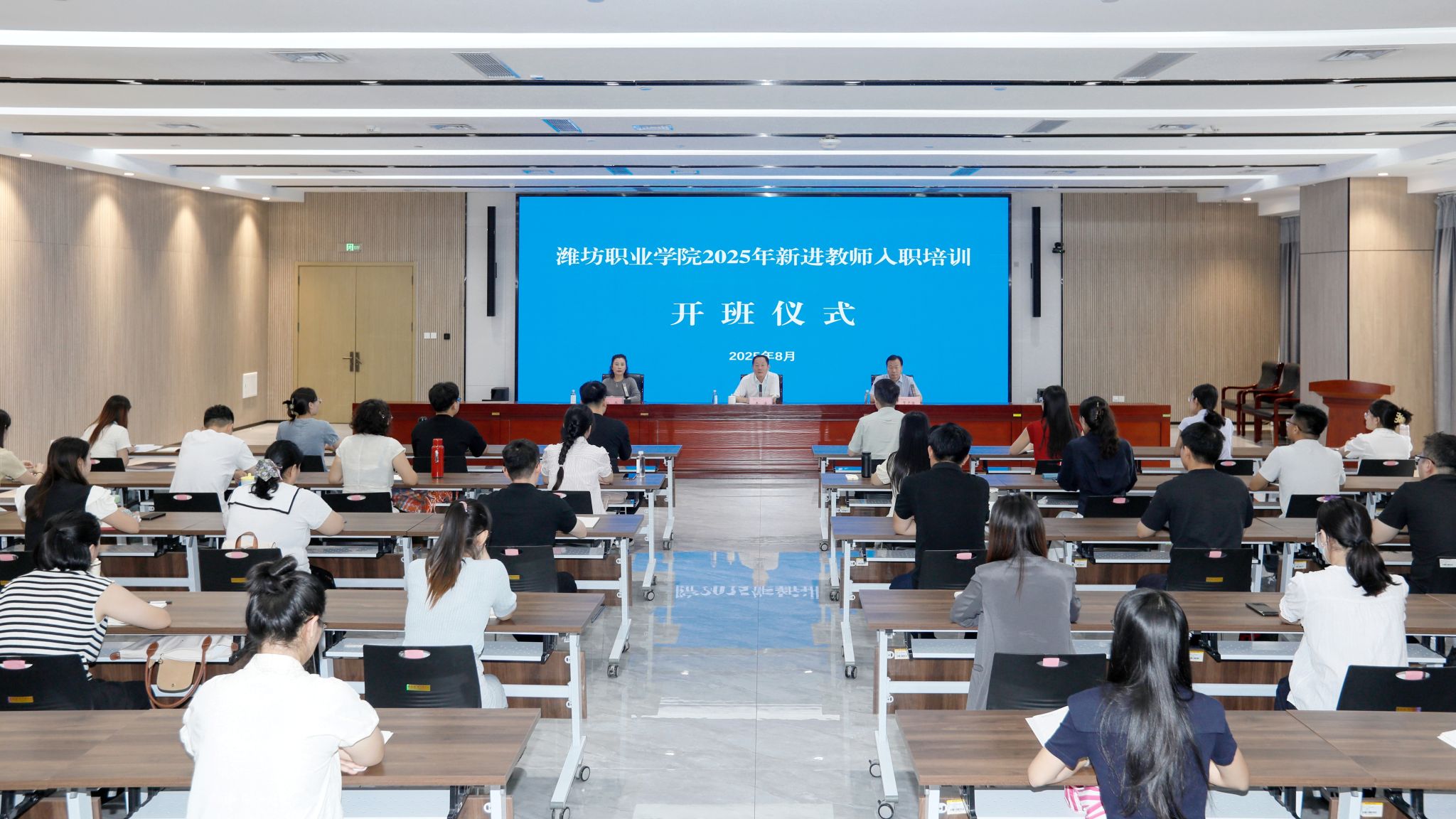 8月26日上午,学院2025年新进教师入职培训开班仪式在滨海校区综合楼二楼东会议室举行。学院党委书记王浩、党委副书记贺志强、教师工作部主要负责同志出席仪式,2024年及2025年新入职的71名教师共同参加。贺志强主持开班仪式。王浩在开班仪式上讲话。他代表学院党委对新教师表示热烈欢迎,叮嘱大家要心怀感恩、珍惜岗位,并对新教师提出五点要求:一要把握新时代赋予教师的职责使命。切实承担起培养高素质技术技能人才的使命,成长为推动教育强国建设的中坚力量。...更多 -