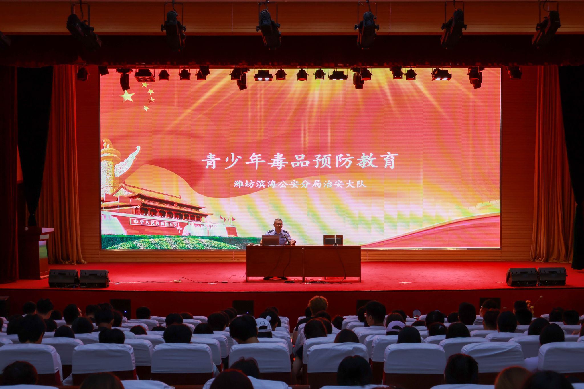 为增强学生安全防护意识,8月28日下午,学院联合滨海区公安分局在滨海校区图书馆报告厅开展“毒品预防教育开学第一课”活动。200余名学生参加了此次活动,滨海区公安分局王东东警官担任主讲人。宣讲中,王东东警官结合真实案例,详细介绍了新型毒品的种类及其隐蔽传播途径,现场演示“看外观、查来源”的识毒方法,提醒学生远离可疑社交场景。在互动环节,王警官围绕“发现涉毒行为该如何举报”等问题与学生互动,现场学生积极回应、...更多 -