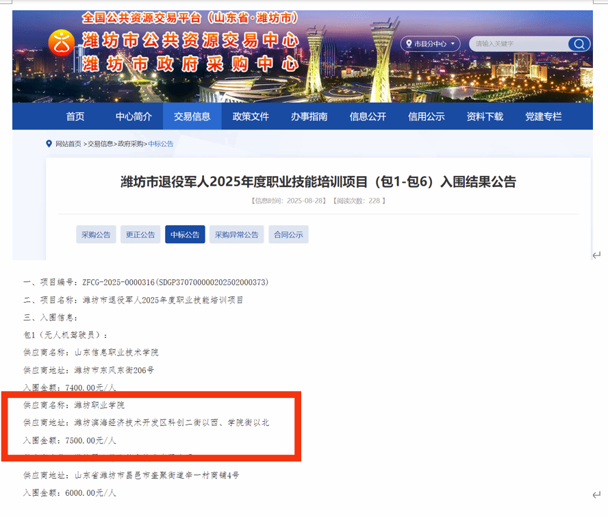 近日,在潍坊市退役军人事务局组织的项目评审中,我院凭借专业培训方案和完善服务体系,成功中标无人机驾驶员、汽车驾驶(C证)、电工作业(低压电工)及教育教学专项能力四大培训项目,将为2025年度自主就业退役士兵提供高质量技能培训。该项目是我院服务退役军人、履行社会责任的重要实践,为地方培养高素质技能人才提供了新路径。学院高度重视该项目,围绕退役军人从军营到地方的角色转变需求,精心设计培训内容。继续教育学院成立专项小组,...更多 -