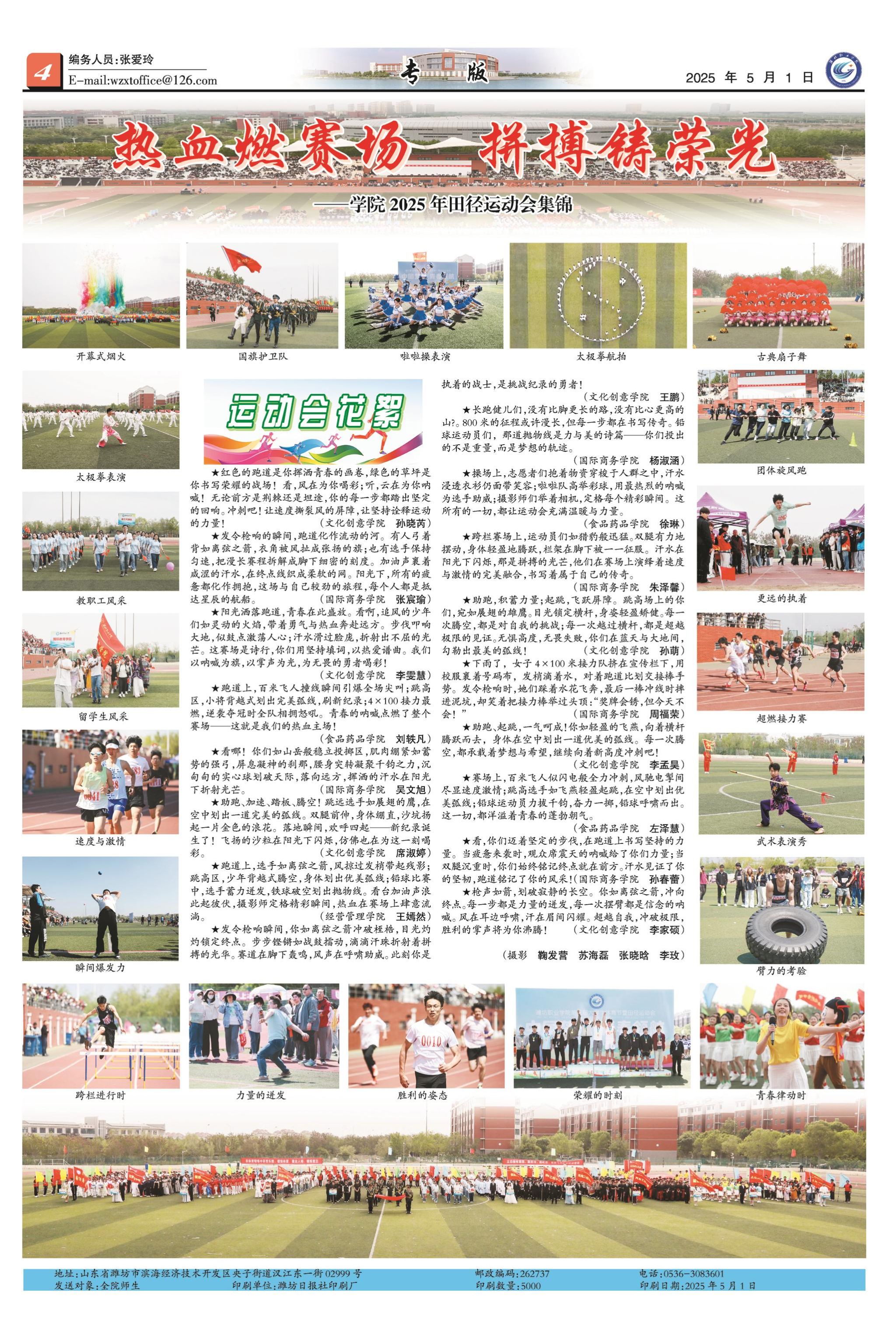 4月27日至4月29日,为期三天的校园春季运动会在滨海校区田径场举行。大学生记者团40余名成员身着橙色记者服,全身心投入到运动会的采访报道工作中。活动期间,记者团成员们根据学生组、裁判组、志愿者组、运动员组等不同采访对象,分小组开展采访。他们穿梭在赛场的各个角落,用手中的笔和录音设备,记录下运动健儿的拼搏身影、裁判的公正执裁、志愿者的默默奉献以及同学们的热情呐喊。采访过程中,大家积极与各组成员沟通交流,深入挖掘背后的故事,...更多 -