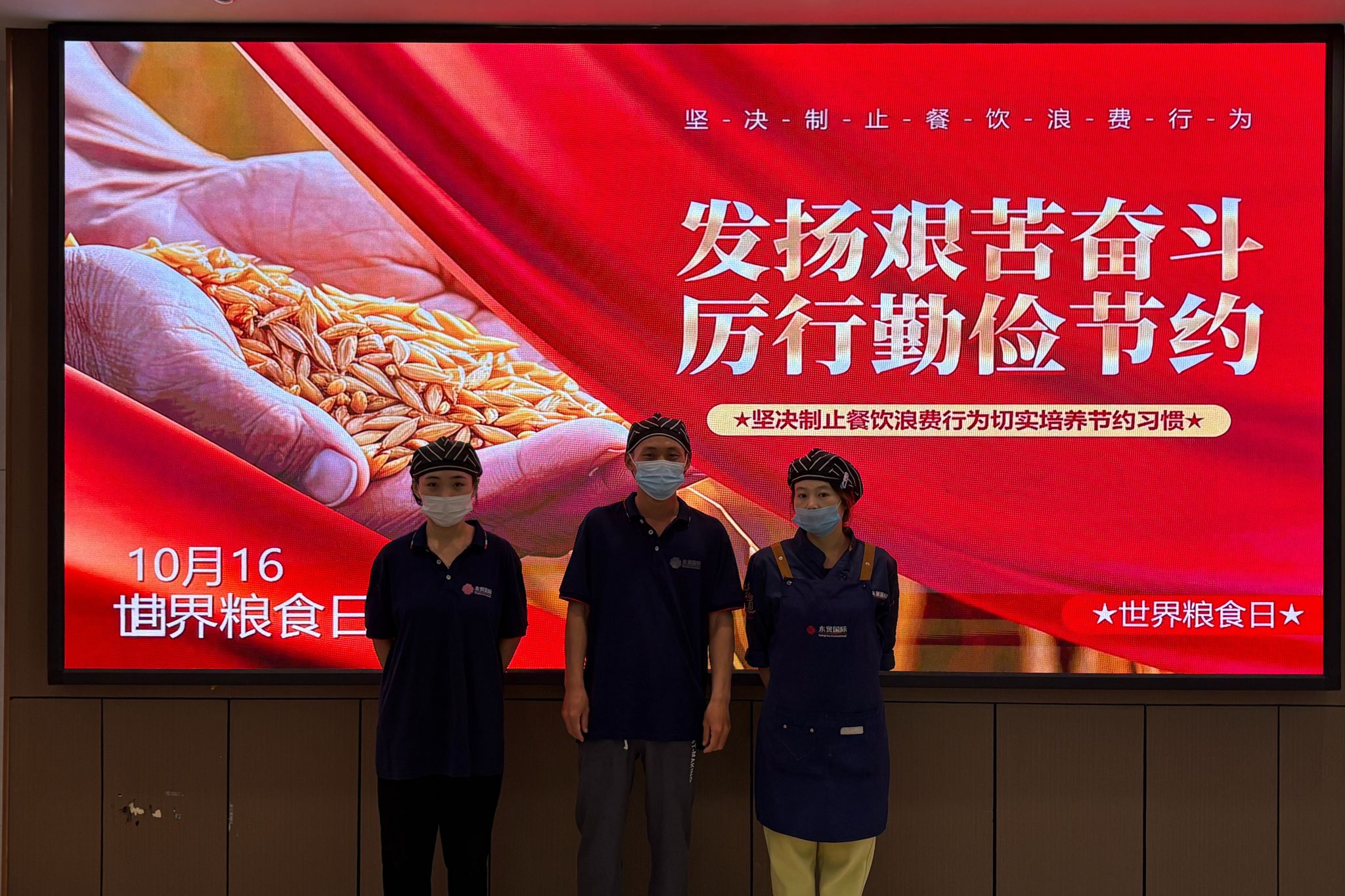 10月16日是第45个世界粮食日。为深入贯彻落实习近平总书记关于制止餐饮浪费行为的重要指示精神,进一步增强广大师生的节粮爱粮意识,营造“浪费可耻、节约光荣”的校园氛围,我院后勤服务处饮食服务中心围绕“光盘行动”主题,组织开展宣传活动,在师生中引起热烈反响。饮食服务中心精心筹划,在各校区食堂显著位置布置了“世界粮食日”主题宣传内容。通过电子屏滚动播放宣传标语、学生食堂餐桌张贴温馨提示、教职工食堂墙面设置醒目标语等方式,...更多 -