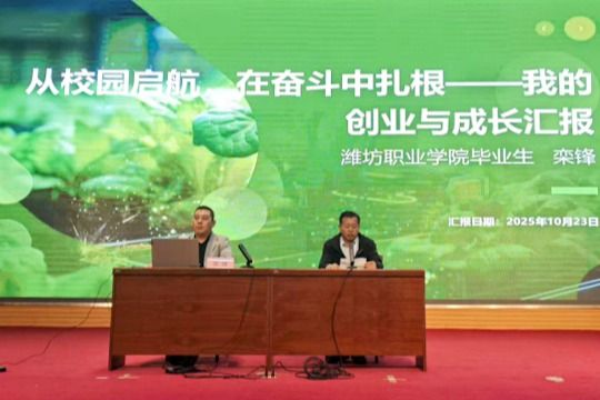 10月23日,农林科技学院优秀毕业生栾锋重返母校,以“从校园启航,在奋斗中扎根”为主题作创业与成长汇报,为学弟学妹们带来了一场兼具实战智慧与人生感悟的分享会,点燃了青年学子投身乡村振兴的热情。汇报中,栾锋先分享了自己的成长历程,两次创业失败的经历让他学会敬畏行业、复盘反思与果断止损,最终选择回归家乡安丘,锚定乡村振兴赛道,打造多个农业项目并创业成功。随后他结合自身发展寄语学弟学妹:专业是多元发展的“敲门砖”...更多 -