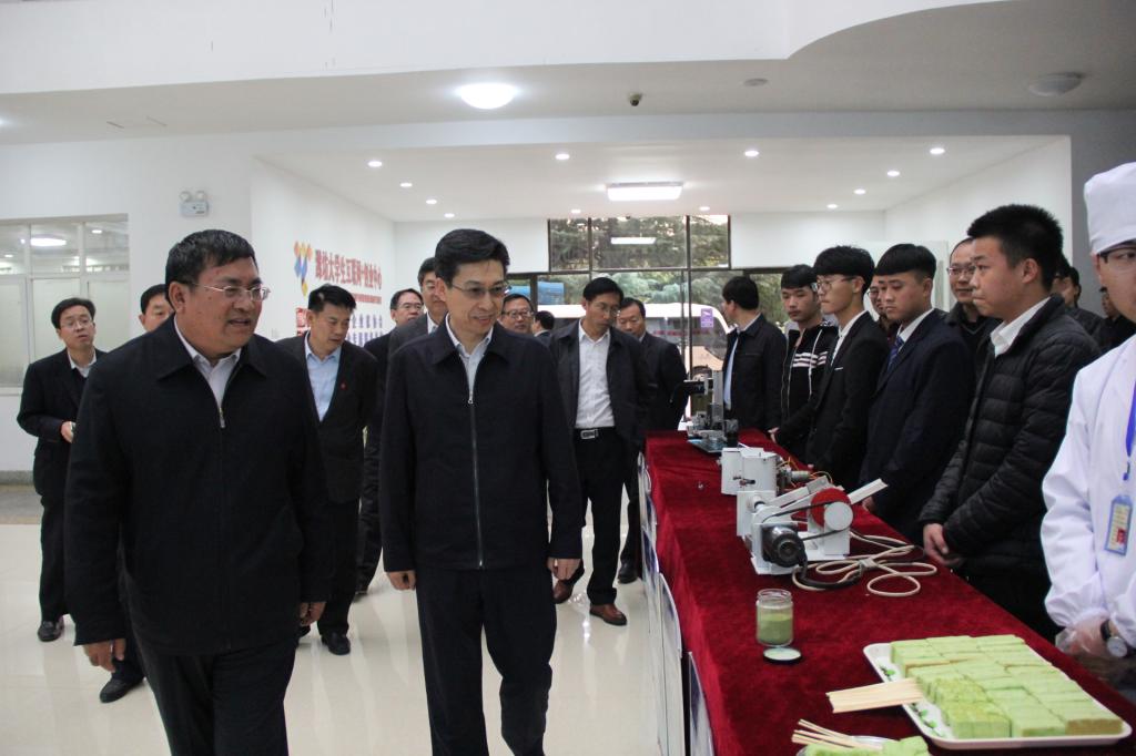 李宽端一行实地参观了学院“潍坊市大学生‘互联网+’创业中心”,观看了学院专题宣传片,查看了我院大学生创新创业中心现场,饶有兴致地与全国大学生节能减排获奖项目环保铅笔研发团队亲切交流,走进漫悦美创业咖啡吧、乐佳家家政服务、子衿阁服饰、“潍水缘”桑叶茶等成功创业公司,与潍职创客大学生们亲切交谈,仔细询问了创业公司经营范围、运营效益,勉励同学们树立创新创业梦想,努力打造创业品牌,服务区域经济社会发展。