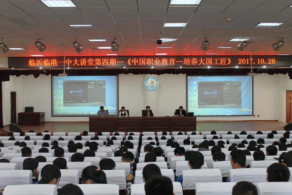 10月28日学院选派韩香莲博士、李海玉、徐之军三位教师到临港一中举办合作育人报告会,临港一中副校长孟祥锦主持会议,临港经济开发区教体局领导及临港一中师生600余人参加报告会。