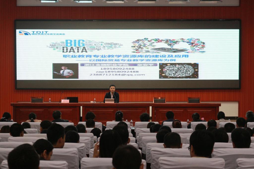 10月13日,学院在滨海校区清泽楼报告厅举行了职业教育专业教学资源库建设专家报告会,浙江金融职业学院质量办主任章安平教授、扬州工业职业技术学院化学工程系工业分析技术专业带头人毛云飞副教授应邀来院作专题讲座。教务处负责同志,优质校建设办公室、信息管理中心以及各二级学院分管教学副院长、教研室主任等相关人员参加了报告会。