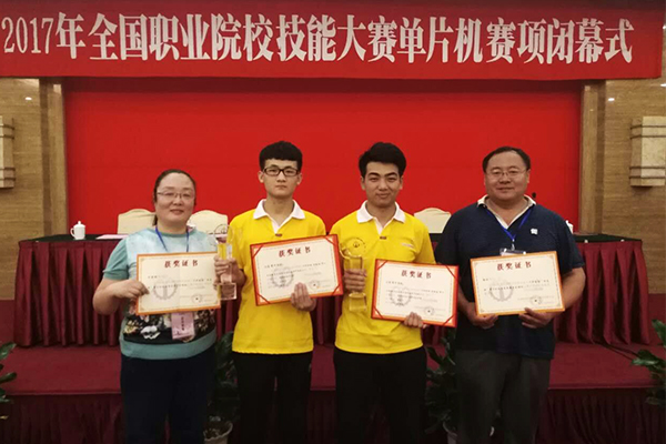 6月3日,2017年全国职业院校技能大赛中职组“单片机控制装置安装与调试”赛项在无锡机电高等职业技术学校举行。我院2014级机电一体化五年制二班的王树青、徐金川两名参赛同学双双获得该赛项一等奖,同时指导教师王琰琰、徐刚获得优秀指导教师奖。