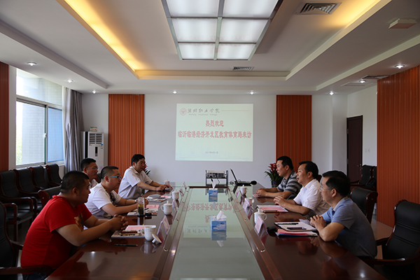 6月1日,临沂临港经济开发区教育体育局党组成员、工会主席周艺涛,临港一中副校长王和仁一行4人来我院考察交流。副院长贺志强接待了客人。招生就业处、通识教育中心相关负责同志参加活动。