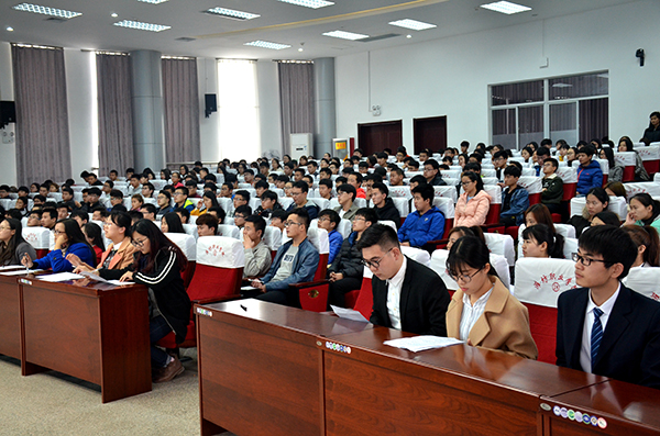 3月30日下午,学院2017年寒假社会实践活动成果汇报交流会在滨海校区清泽楼报告厅举行。团委学生工作处相关人员、各二级学院团总支负责同志、寒假社会实践团队代表以及学生代表共300余人参加交流会。