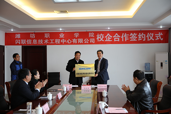 王家爱、孙育宁共同签署了校企合作协议。张洪全代表学院接受了企业价值30万元的物联网实训室设备捐赠。