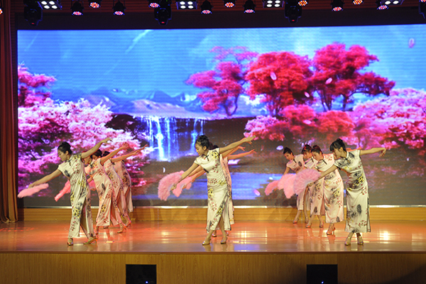 红红火火的《最美宫灯红》拉开了整场晚会的序幕。劲爆动感的《Crazy Dance》、清丽温婉的《那些花儿》、大气恢弘的《长征颂歌》、荡气回肠的《拉住妈妈的手》等节目精彩纷呈,赢得了观众的阵阵掌声。走秀《中国风》让我们既欣赏了男子汉的粗矿伟岸,又领略了旗袍美女的一抹温柔。声情并茂的《祖国万岁》、伤感怀旧的《往日时光》、充满能量的《隐形的翅膀》、温暖唯美的《一场怀念》,美妙的音乐与表演者完美结合,为观众奉献了一场精彩的视听盛宴。“你在滨海的蓝天下畅想未来,我在奎文的绿荫里遥望大海……滨海南奎文北,南北文脉连”,由我院教师重新填词的《南山南》,展现了潍职人的一颗赤子之心,引起了全场的共鸣。