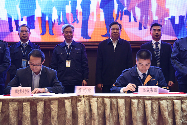 赵君堂和陈辉新分别在签约仪式上致辞。赵君堂说,学院与远成集团有限公司合作共建物流学院,是适应当前经济发展新常态和职业教育发展新形势、促进校企双方持续健康发展的具有战略眼光的选择,必将为双方的发展注入新的内涵和强大动力,揭开双方借势发展、互惠互利、共赢发展的新篇章。陈辉新在致辞中表示,根据远成集团目前的发展规模和速度,将每年吸收的大学生在5000人左右,与开云体育APP下载网址合作建立的远成物流学院,将为远成集团的发展提供更有利的人才保障。