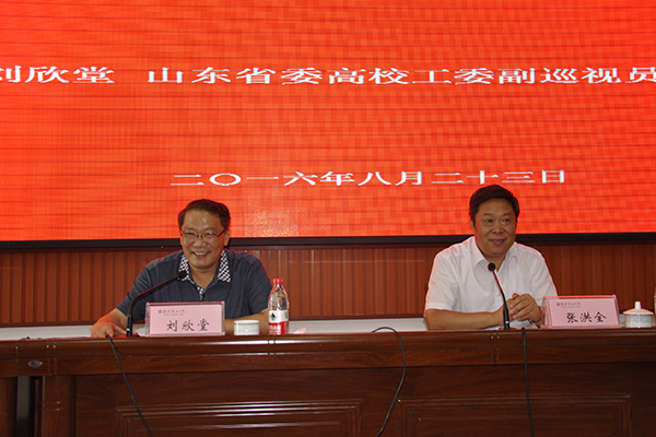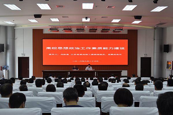 8月23日,根据2016年学院暑期领导干部读书班日程安排,山东省委高校工委副巡视员、宣教处处长刘欣堂以“高校思想政治工作素质能力建设”为题,在滨海校区清泽楼报告厅为我院干部教师作思想政治工作专题报告。学院党委书记张洪全主持报告会,院长王家爱等学院领导与全院副科级以上干部及骨干教师代表参加报告会。