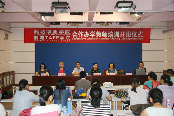 8月15日,我院与澳洲TAFE学院合作办学教师培训开班仪式在奎文校区举行。学院副院长赵君堂,澳大利亚职业教育与培训协会理事Phoebe Chen、南威尔士州北岸TAFE学院资深教师Lisa Bale女士,教务处、国际交流与合作处主要负责同志,参加培训的20位教师以及相关人员等参加了开班仪式。