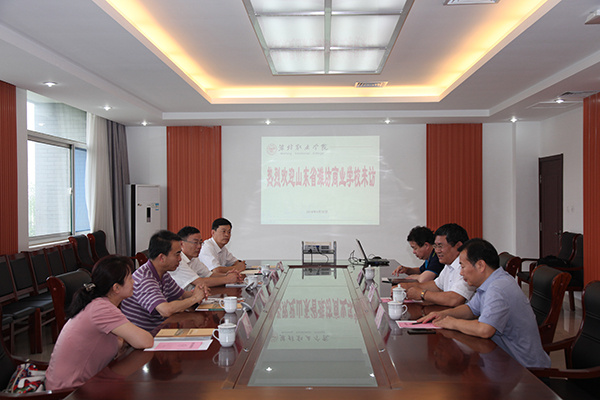6月20日,山东省潍坊商业学校校长孙中升一行4人来我院考察交流。院长王家爱、副院长贺志强在会议室会见客人,招生就业处负责同志参加座谈。