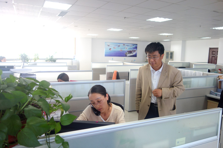 近日,记者走进山东晟绮港储国际物流有限公司,2013级报关与国际货运、商务英语、应用韩语专业学生正在公司营业厅实训实习,接受委托出口订舱业务,制定订舱模板,向青岛港询价,洽谈合适价格,通报相关客户,同意后委托订舱,发入货通知,入货码头装船,出口报关,到港接货……,公司职员统一着装,面带微笑,有条不紊,接洽业务,以优质服务满足客户需求。