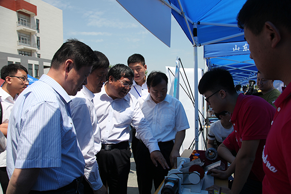 6月4日,2016年驻潍高校毕业生专场招聘会暨潍坊大学生创业成果展示会在学院滨海校区隆重举行。学院院长王家爱、副院长贺志强、纪委书记李瑞昌,及潍坊市人社局副调研员王瑞亮、市就业指导中心主任王术平到招聘会现场检查指导。这是由市人社局主办、我院承办、首次在滨海开发区举办的潍坊市大学生创业成果展示会。