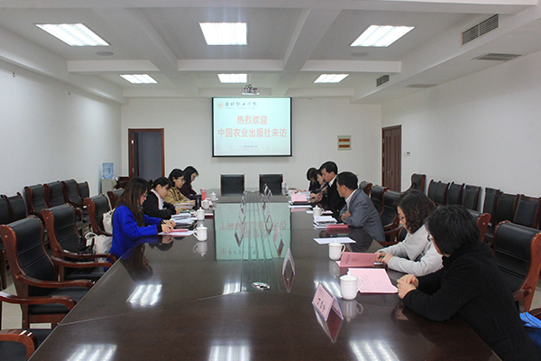 3月23日,中国农业出版社职教分社社长杨金妹一行4人,来我院就教材建设等方面工作进行调研。学院中专部、农业工程学院、园林工程学院、机电工程学院、经营管理学院等部门负责同志参加座谈交流。