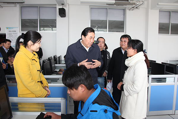杜昌文一行实地参观了学院名校建设成果展,观看了名校建设成果专题片,现场察看了信息工程学院大学生创新创业中心,同创业实训的师生亲切交谈,勉励同学们树立创新创业梦想,努力打造创业品牌,力争把创新创业产品做到全市乃至全省全国去,祝愿同学们成功成才,率先成为创业成功者。