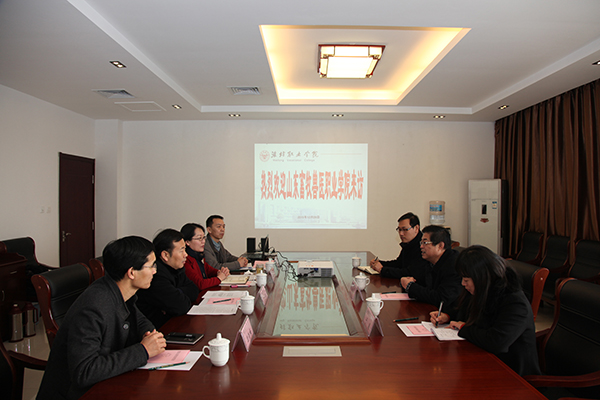 贺志强代表学院对山东畜牧兽医职业学院一行表示欢迎,简要介绍了学院办学情况,交流了近年来学院建设发展所取得的成果。教务处负责同志就省农林职业教育专业建设指导委员会成立、章程制定等工作作了介绍。双方对口部门负责同志就教学管理和人才培养等方面工作作了探讨交流。山东畜牧兽医职业学院一行人参观了学院实训室。(杨晓华供稿)