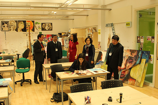 王家爱一行参观访问了斯托克顿河畔学院的比德校区。校区负责人瑞克•威尔斯介绍了校区建设情况、教学设施、师资配备情况及人才培养成绩等,重点介绍英国A-Level教育体制,学校开设的数学、计算机、媒体、艺术、生物科学等学科的情况,并陪同参观了教学实验室。学校人性化的设计、整洁的环境、先进的教学设施、学生的创新意识、动手能力及师生丰富的教学成果展示等给大家留下了深刻的印象。访问期间,学校董事会主席史蒂夫.科森接见了王家爱院长一行,并就争取双方政府支持,推进两校广泛合作进行了深入探讨。