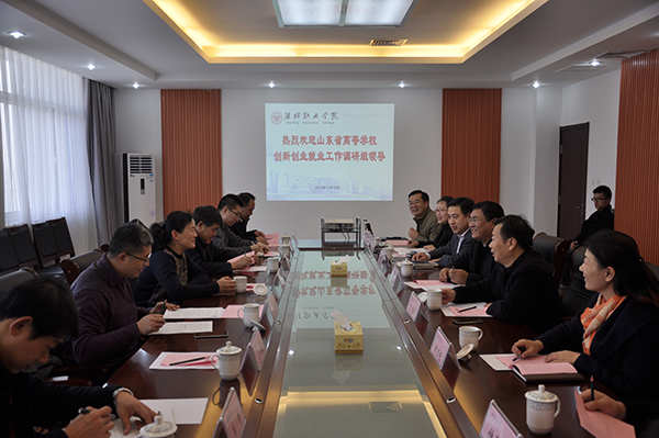 贺志强向调研组介绍了学院“上下联动、内外结合、校企合作”的大学生创新创业就业工作思路以及工作开展情况,重点就创新创业课程体系、创新创业平台搭建、潍坊大学生“互联网+”创业中心建设情况等方面进行了汇报。调研组充分肯定了学院在大学生创新创业教育工作中取得的成绩,对学院在山东省首届互联网+创业大赛中取得的优异成绩表示祝贺,希望学院在下一步的工作中加大力度,将创新创业观念根植于教师的理念中,在专业课教学中融入创新创业理念,切实推动大学生创新创业工作。