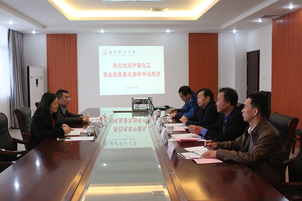 近日,中国化工职业技能鉴定中心主任沈磊、副主任刘东方一行来我院访问。学院副院长贺志强与化学工程学院主要负责同志、教务处相关负责同志及部分教师参加了活动。