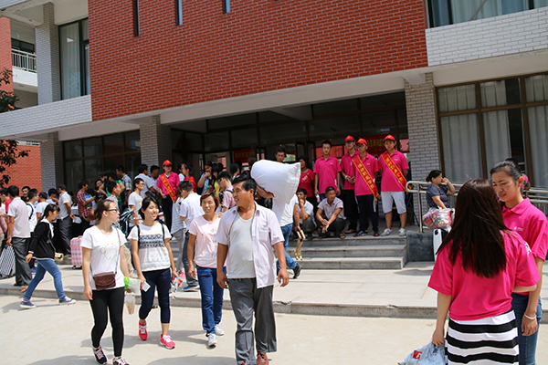 今年的迎新工作,学院领导高度重视,专门成立了迎新工作领导小组,8月31日召开了迎新工作调度会,落实分工责任,细化工作流程,要求一切以服务学生为本,用最热情的服务优质完成迎新工作,让学生满意、让家长放心。迎新过程中,我院推行了多项人性化举措:在火车站、汽车站,学院设有接站点,每位新生都可以在学生志愿者的引领下顺利到达校园;新生报到、缴费点集中在承泽楼,食宿用品发放分布各公寓楼,开展一站式服务,免去家长学生来回奔跑之苦;校园里多处设置了饮水处,大二学生为新生和家长热情引导;加强安保力量,在校园主要路段疏导车辆,确保新生报到安全有序;咨询处、缴费处、各二级学院报到处等标志醒目有序……一系列温暖而细致的服务举措赢得了新生和家长的广泛好评。来自临沂的一位家长由衷地赞叹:“学校里绿树成荫,干净整洁,环境很好,能感觉到很浓厚的学习氛围,希望孩子在这里好好成长。”