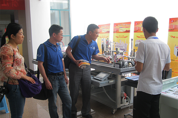 在校企合作展示区,歌尔声学股份有限公司、万声信息产业有限公司、福田雷沃国际重工股份有限工公司等学院战略合作伙伴集中介绍了近年来校企深度合作取得的优异成绩。北京华航唯实的自动装配机器人工作站展示、浙江亚龙教育装备股份有限公司的机电一体化教学设备展、北京格瑞纳电子产品有限公司的仿真教学软件等先进教学装备令参观者大开眼界,为改进教学理念、促进信息化教学提供了方向。