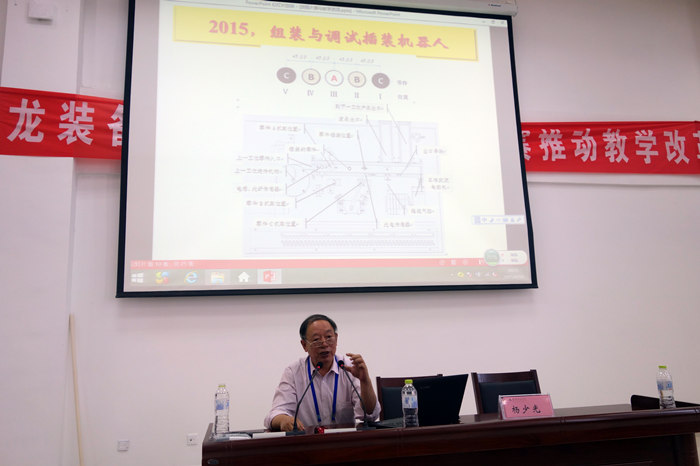 论坛会上,来自天津开发区畅洋工贸有限公司总经理张敏、广东省机电教学指导委员会专家杨少光、浙江亚龙教育装备股份有限公司总经理陈传周、北京格瑞纳电子产品有限公司经理陈永刚、北京航空航天大学教授罗红宇,紧紧围绕机电行业发展现状、未来发展趋势及校企合作成功做法,应邀分别作了“携手同行,搭建创新创业教育平台”、“大赛如何转化为教学职业研究”、“为培养紧缺人才提供优质服务”、“机电一体化虚拟仿真技术现状分析”、“面向工业4.0的工业机器人职业教育”等专题报告,部分企业代表与专业师生现场互动交流,探讨了新常态下加工制造业发展带给职业教育和学生就业带来的深刻变化,受到了与会人的广泛好评,赢得了热烈掌声。