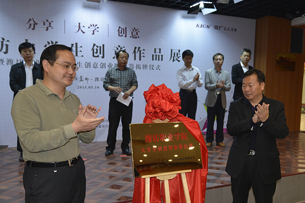 5月10日,首届“分享•大学•创意”潍坊大学生文化创意作品展开幕式暨开云体育APP下载网址大学生创意创业孵化器揭牌仪式,在京广文化广场潍州大讲堂举行。学院副院长贺志强,中共奎文区委常委、宣传部长李强,潍坊银行开发管辖行行长稽海涛,奎文文化创意产业协会会长刘晓阳,奎文文化创意产业协会秘书长纪建华出席。师范/文化创意学院主要负责同志及部分师生、北京出版集团负责同志、高校创业研究专家、金融机构代表、风投机构代表和媒体记者百余人参加了活动。