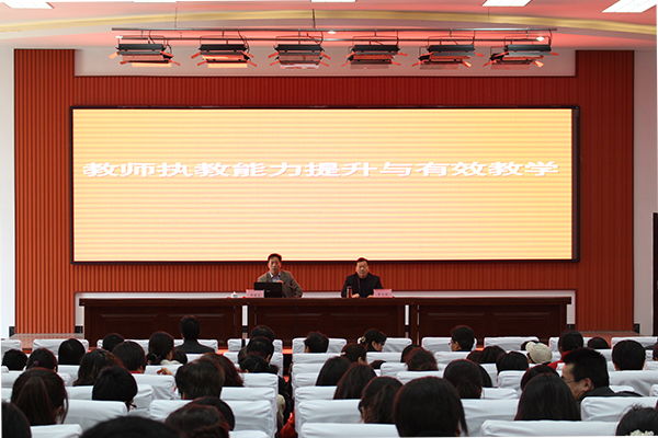 4月16日下午,我院教学管理人员培训班首场专家报告会在滨海校区清泽楼报告厅举行。报告会由学院副院长贺志强主持。来自教务处、中专部和二级学院的近200人参加了报告会。