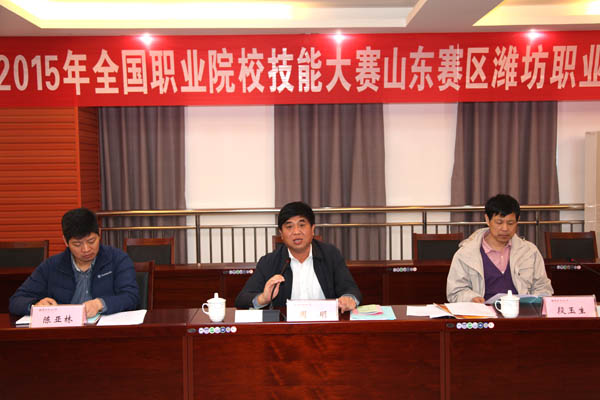 4月12日,2015年全国职业院校技能大赛山东赛区开云体育APP下载网址赛点启动协调会,在滨海校区清泽楼会议室召开。国家工信部电子行业职业技能鉴定指导中心主任周明,国赛赛项专家组组长段玉生教授、陈亚林教授、杨少光顾问及专家组成员一行12人,省教育厅职成教处调研员姜玉亭,滨海开发区管委会副主任宋世伟,潍坊市教育局党委成员、市招办书记李广敬,学院领导班子成员出席,滨海科教创新区管理服务中心、市职教研究室和我院相关二级学院、职能部门负责人、大赛办公室全体人员参加会议。学院院长王家爱汇报国赛筹备情况,副院长贺志强主持会议。