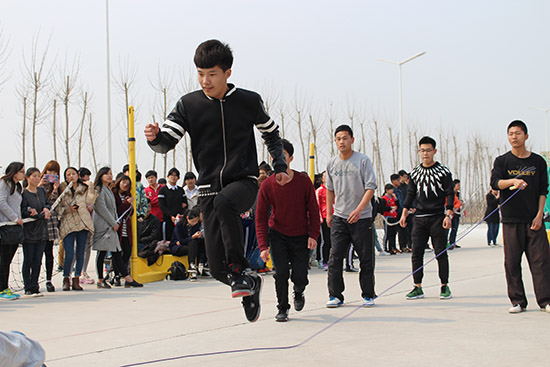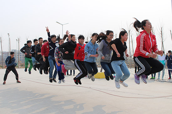 我院大学生“走下网络、走出宿舍、走向操场”主题群众性课外体育锻炼系列活动,4月8日正式启动。系列活动包括趣味跳大绳比赛、健身操比赛和“青春杯”风筝放飞比赛。