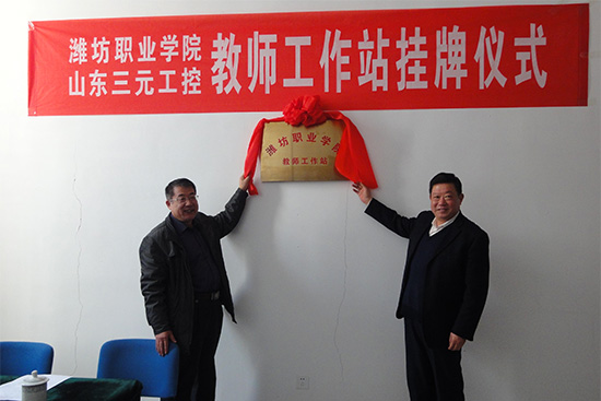 公司董事长袁训孝热情接待了机电工程学院一行人员,并介绍了公司和下设的潍坊三元工控自动化职业培训学校的发展情况,表示非常希望与学院进一步深入合作。娄树军为教师工作站成立致辞,对双方前期实质性合作取得的成绩高度评价,同时对驻站教师提出了工作要求。工作站成立后,机电工程学院杜洪香教授被聘为潍坊三元工控自动化职业培训学校名誉校长,6名骨干教师被聘为企业讲师。