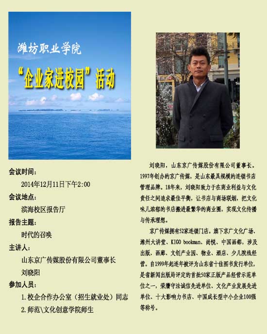 “企业家进校园”活动之四十:山东京广传媒股份有限公司董事长刘晓阳报告会