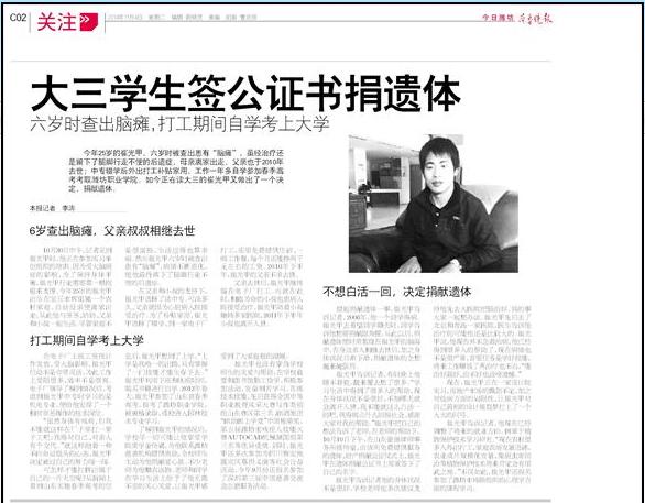媒体潍职:[齐鲁晚报]大三学生签公证书捐遗体
