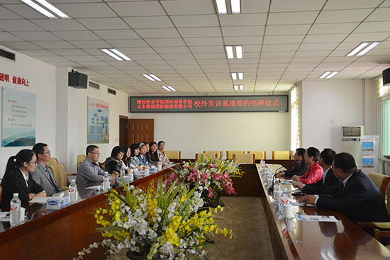 在此次校外实训基地签约挂牌仪式上,国际商务学院主要负责同志对企业给予的大力支持表示感谢,指出双方共建实训基地标志着双方的合作关系更加牢固,为下一步的深度合作开启了新的篇章。作为学校内涵建设、名校建设工程的重要内容之一,此次校企联姻,一方面为企业提供了高素质应用型人才,另一方面,校企双方希望今后能够在人才培养、专业建设、课程建设、师资培养、校企文化对接与融合等方面取得更加丰硕的成果,实现校企互惠双赢、共同发展。
