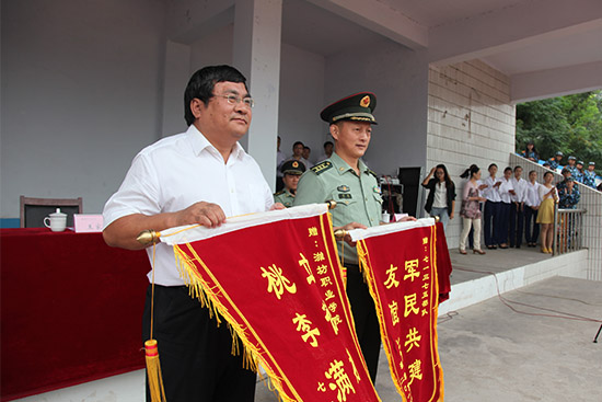 随后,学院领导和部队首长互赠锦旗。