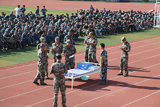 最后,由9位军训教官进行内务示范表演,他们整齐划一的动作和高质量的内务水平赢得了同学们热烈的掌声与喝彩。(华杰供稿)