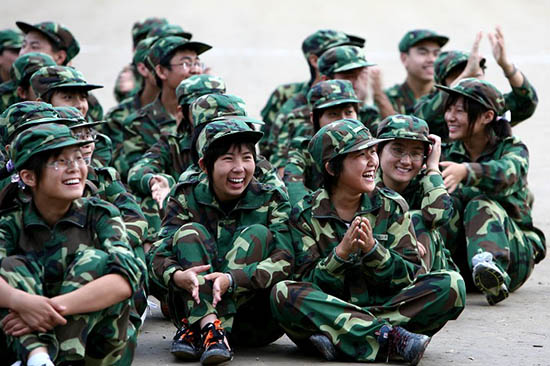 烈日下,操场中,红旗边,方阵间,青春风采完美展现。站军姿,练转身,走正步,整队形,钢铁纪律牢记心头。军训不仅给新生留下了晒得黝黑的皮肤,而且也使他们少了几分娇气,多了一些坚强;少了一份依赖,多了一份自立;少了一份怨天尤人,多了一份勇往直前;少了几分我行我素,多了一些团结合作。时代的骄子,在秋日的阳光下绽放着最美丽的光彩。