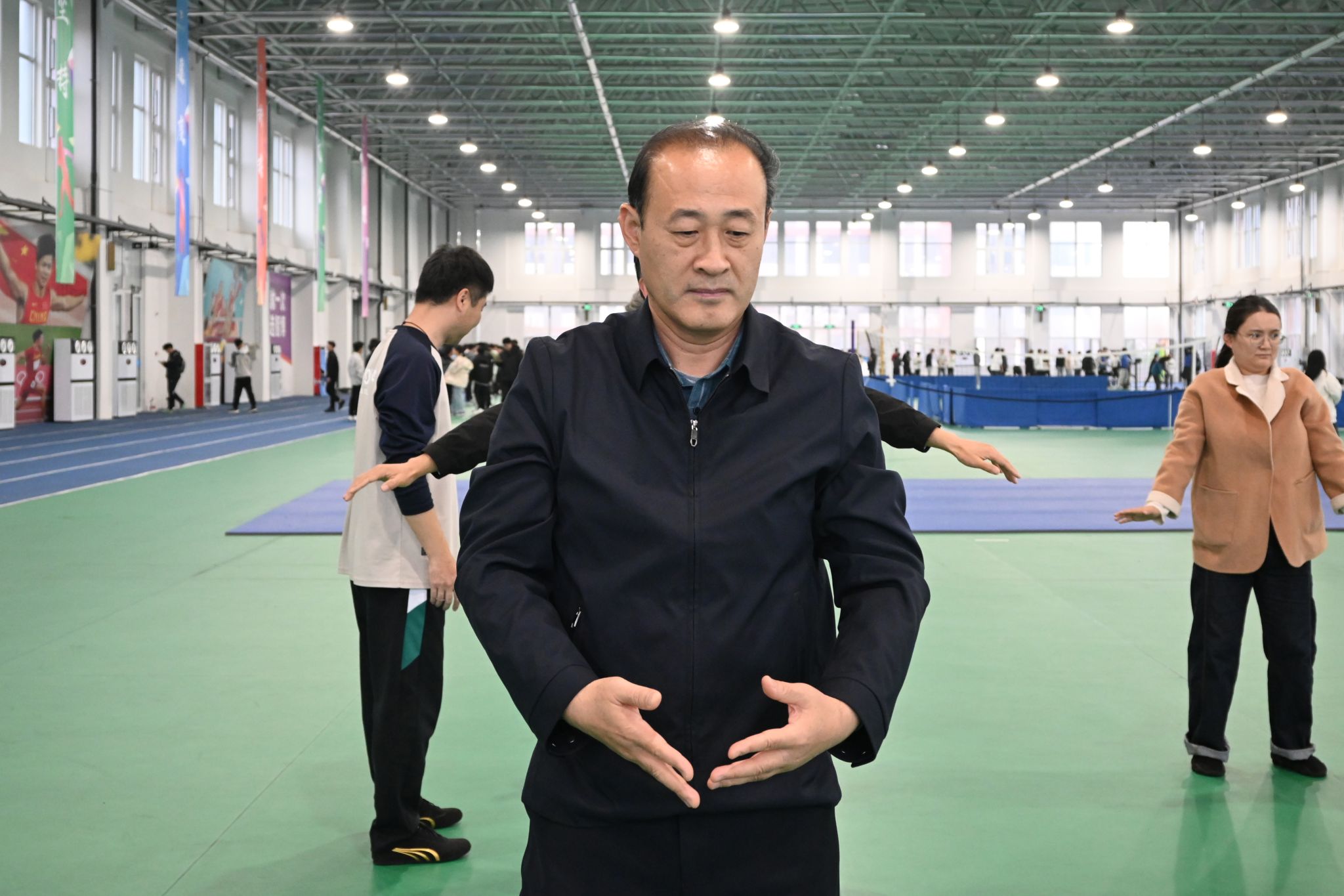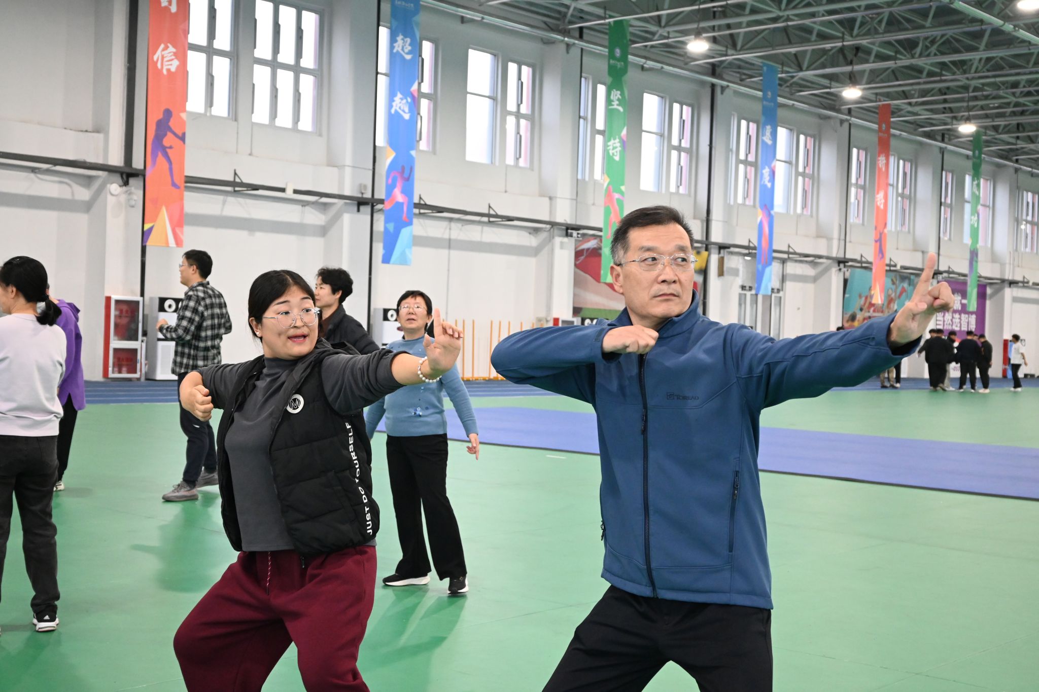 11月14日,学院在滨海校区南区风雨操场田径馆举办第十八期教师沙龙活动。活动以“健康身心 气韵生辉——八段锦与传统文化的现代演绎”为主题,旨在促进教师群体的身心健康,缓解职业压力。此次活动特邀传统体育教学团队的田托、王晓、窦志红、赵长通四位老师作为嘉宾,学院20多名教师积极参加。