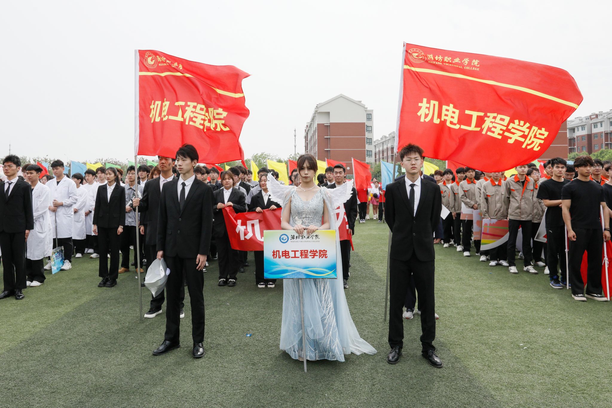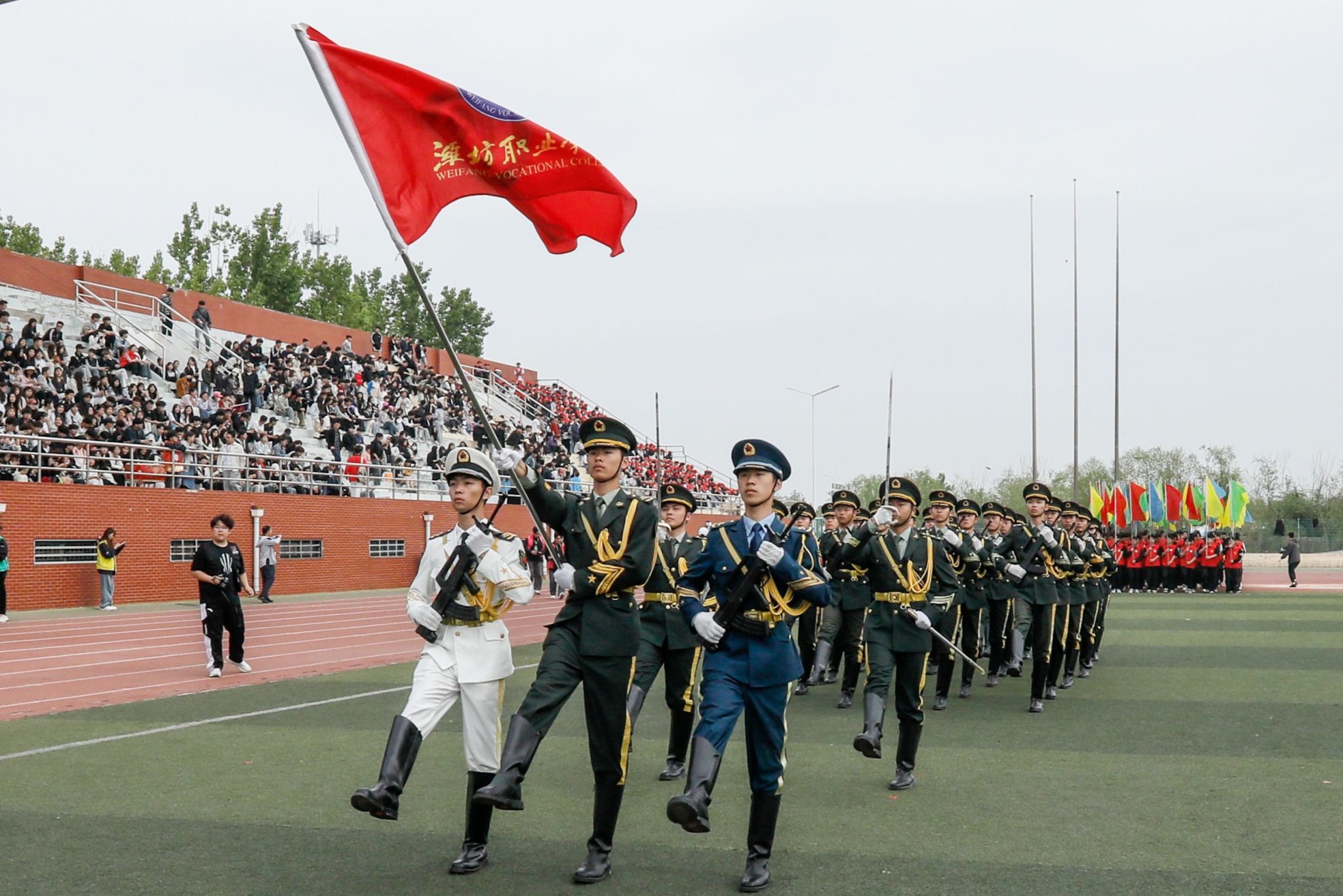 上午8时30分,伴随着激扬豪迈的运动员进行曲,气宇轩昂的国旗护卫队昂首挺胸,彩旗方队、裁判员方队、青年教师方队以及各二级学院代表队、国际教育学院代表队迈着矫健的步伐,喊着嘹亮的口号,意气风发、精神抖擞,用各具特色的表演展示了潍职师生风采,赢得了全场师生的掌声和欢呼。