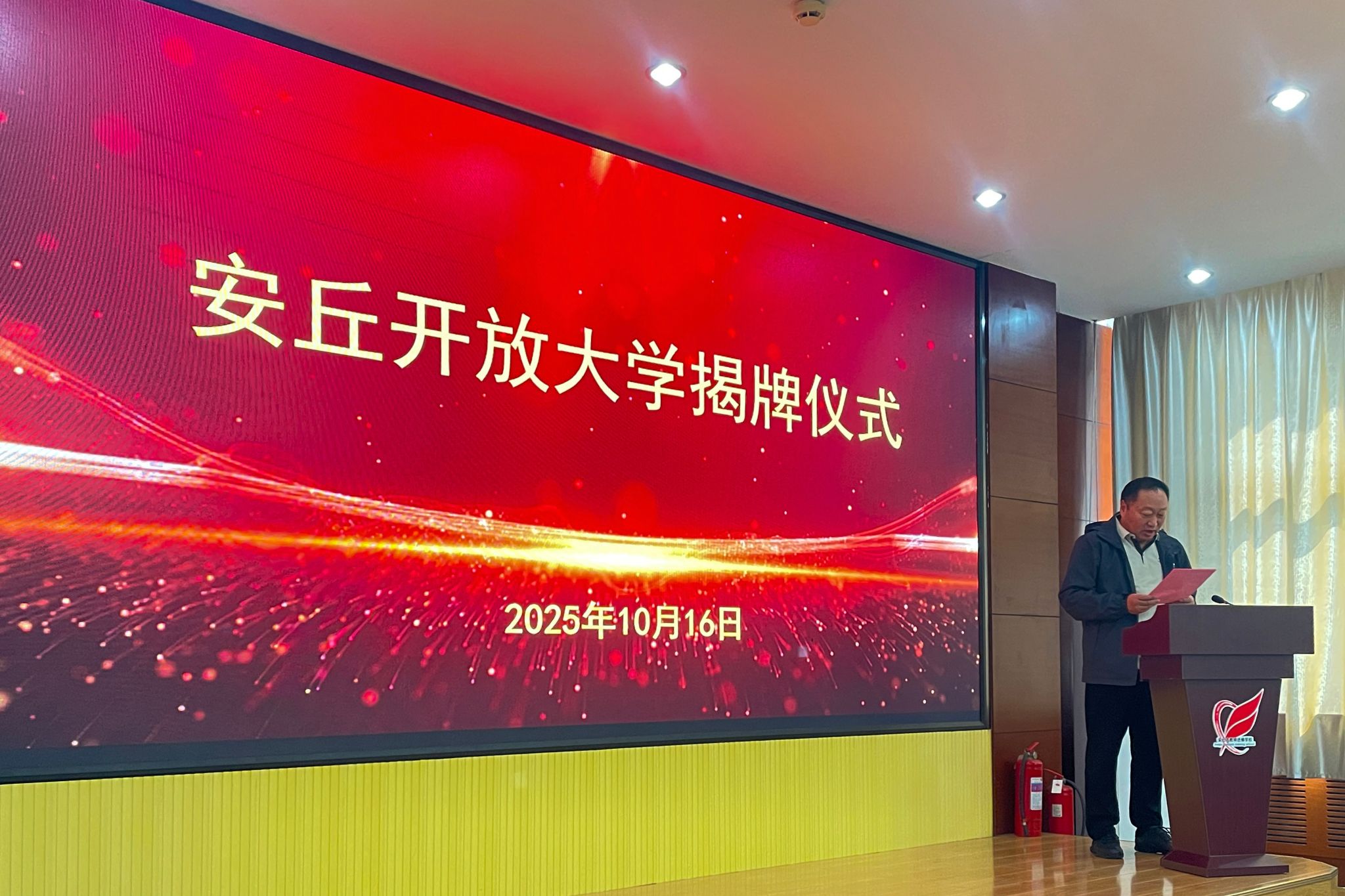 仪式上,付一明代表潍坊开放大学发表了致辞,对安丘开放大学的揭牌成立表示了祝贺。他强调,安丘开放大学的揭牌成立,标志着安丘市开放教育事业发展进入了新的发展阶段。作为潍坊开放大学办学体系的重要组成部分,希望安丘开放大学能以此次揭牌为新的起点,深入贯彻新发展理念,积极融入和服务新发展格局,不断开拓进取,努力谱写高质量发展新篇章。他表示,潍坊开放大学将继续发挥体系优势,在师资队伍建设、优质教学资源整合、现代化管理服务提升等方面,为安丘开放大学提供更全面、更有力的支持与指导。