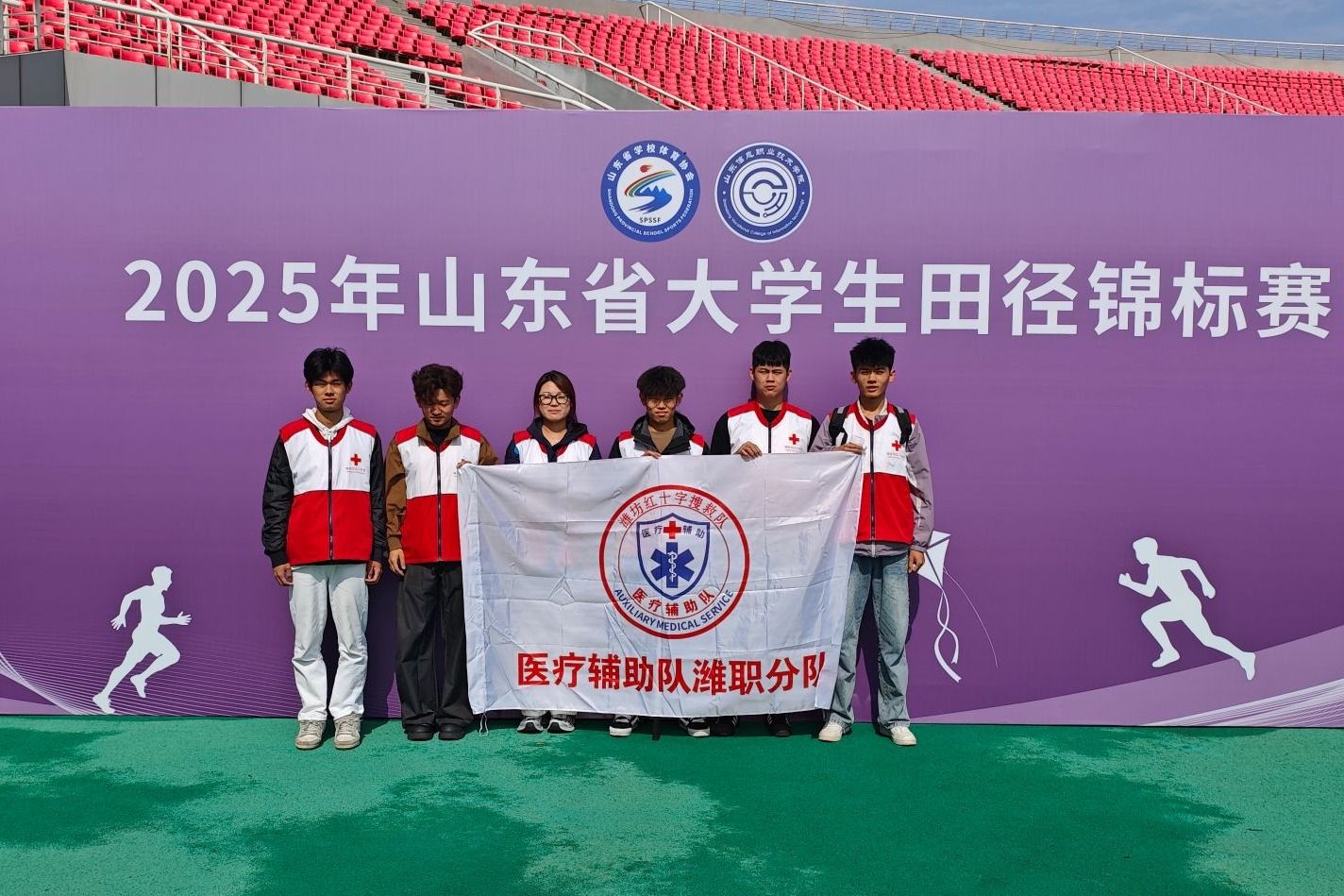 近日,我院与潍坊先锋应急救援促进中心合作共建的“潍坊红十字搜救队医疗辅助队-潍职分队”,顺利完成了山东省大学生田径锦标赛和“歌尔·2025潍坊马拉松暨山东省马拉松联赛(潍坊站)”的志愿服务保障工作。志愿服务由通识教育中心和文化创意学院联合开展,为赛事提供了全方位的医疗保障。