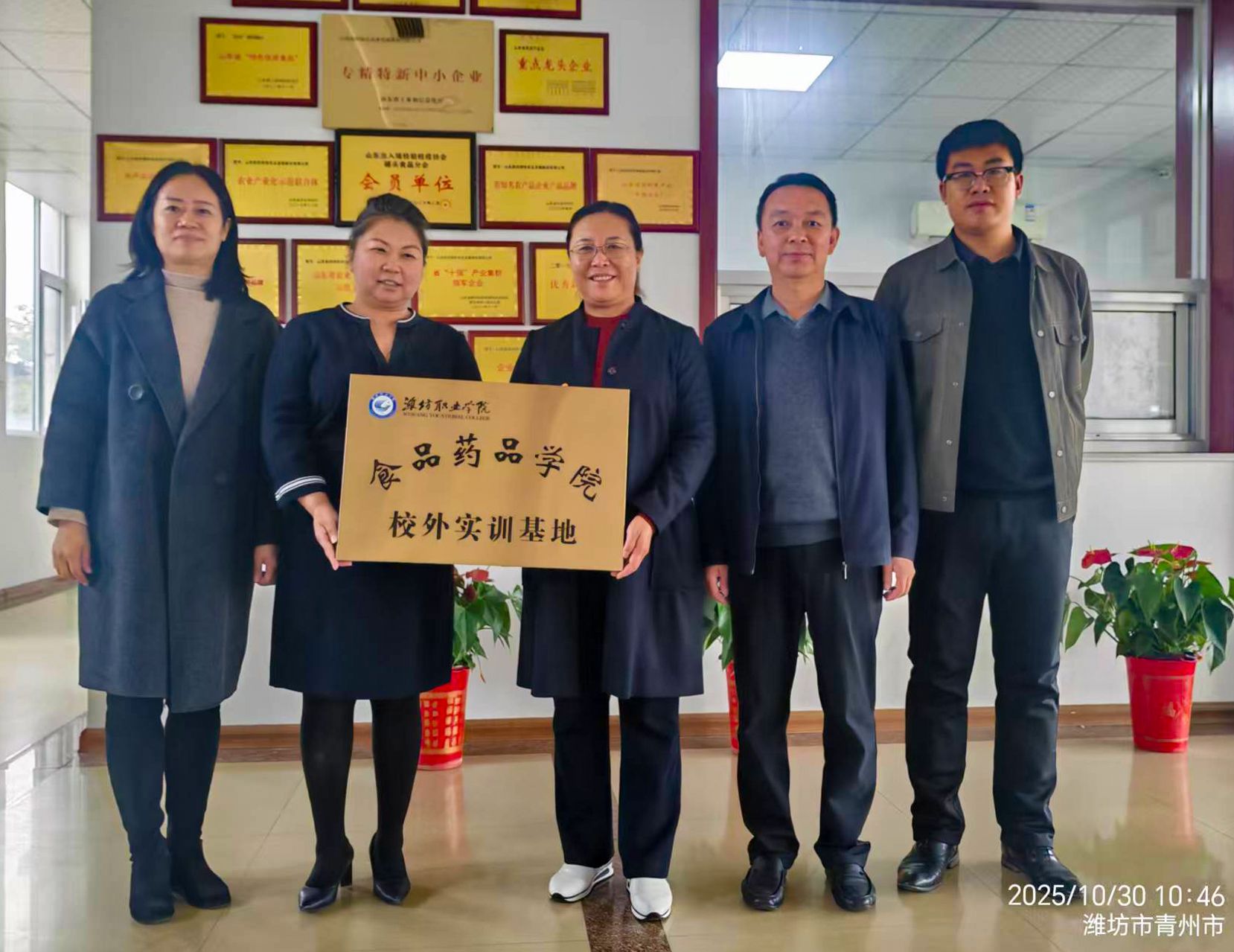 在青州国丰食品有限公司,董事长王同国介绍了企业大健康产业园的建设情况,并期待围绕山楂产业进行深入的合作。双方就专业建设精准对接产业需求、订单班与现代学徒制班定制化培养、横向课题联合攻关、实习就业基地等合作方向展开讨论并达成初步共识。