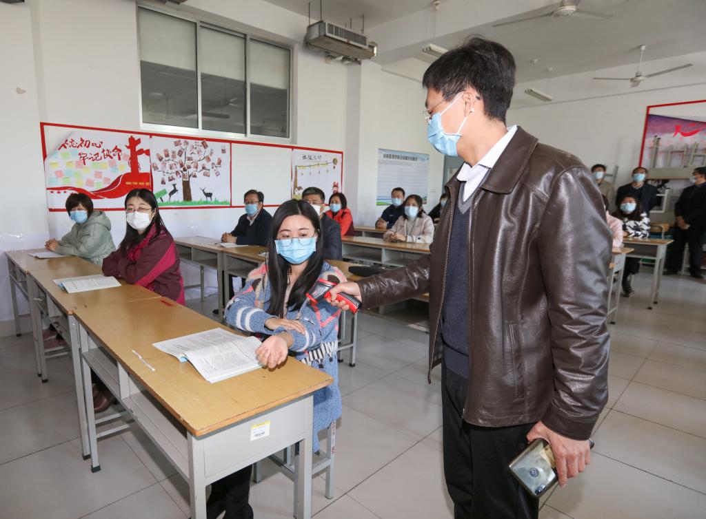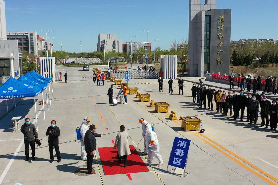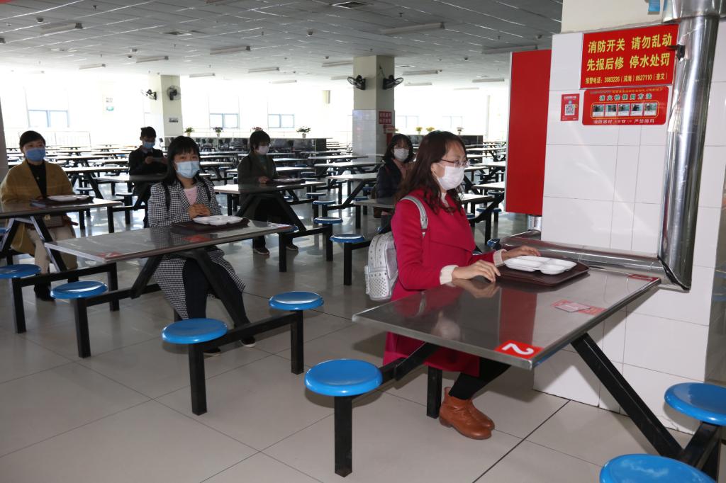演练设6个工作组,按照学生返校、入住公寓、食堂就餐、课堂教学4个场景对发热应急处置、消杀消毒等各个场景和环节进行了全方位、全流程、全仿真模拟。在返校报到入口,模拟演练车站接站返校、乘私家车返校、乘公交车返校3种报到流程,对学生进行体温检测、身份核验、发放通行卡。演练了发现学生发热应急处置程序。在餐厅,学生按规划路线依次测温、洗手消毒后,按照间隔2米排队取餐,取餐后单人单桌单向用餐。在学生公寓,学生排队出示通行卡、测量体温、消毒、入住,每日进行日常晨午检。在教学楼,体温合格者有序进入教室,学生单人单桌,按标识入座。演练了学生、教师自感身体不适应急处置流程。